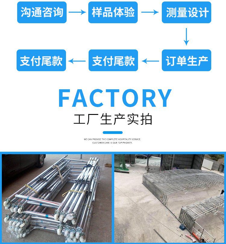 一、架子材料:支架為國標鍍鋅鋼60mm的圓管,壁厚1.2-1.5mm,主架:40*40mm,弧管:40*20mm,支架交叉管:40*20mm。